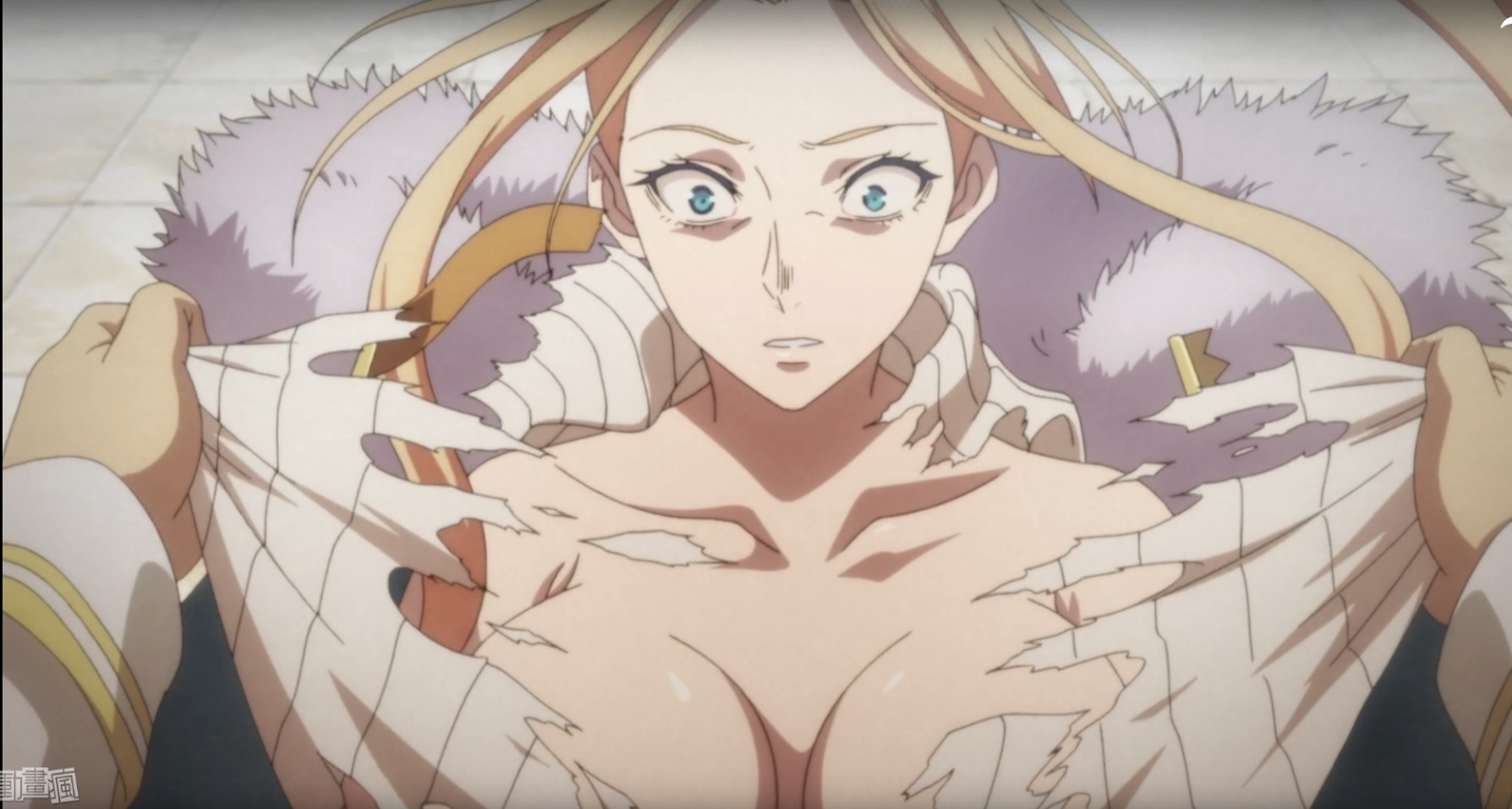 這就讓我想到另一部動畫《終末的女武神》,相信很多人沒看過這部作品,但對於經典的捧奶畫面卻印象深刻,動漫裡大胸部的女角色一點都不稀奇,但大到請兩個猛男幫忙捧著就真的很有梗。我也真的因為這個畫面而好奇去追了這部動畫,同樣的,如果從劇情的角度來看,這個捧奶橋段根本一點都不重要。