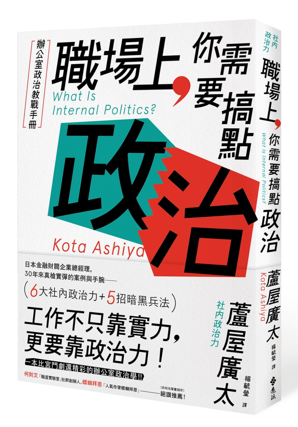 蘆屋廣太的《職場上,你需要搞點政治:辦公室政治教戰手冊》我覺得讀起來挺有趣的也挺有參考性的,對於我上述說的「不知道」和「不懂」辦公室政治的人,讀了以後應該會看到很多值得參考的資訊,甚至刷新自己的觀念。章節的編排很有條理,像是區分出對上、對下、對不同部門、對外界等等的作法,而且都有實際案例輔助說明。