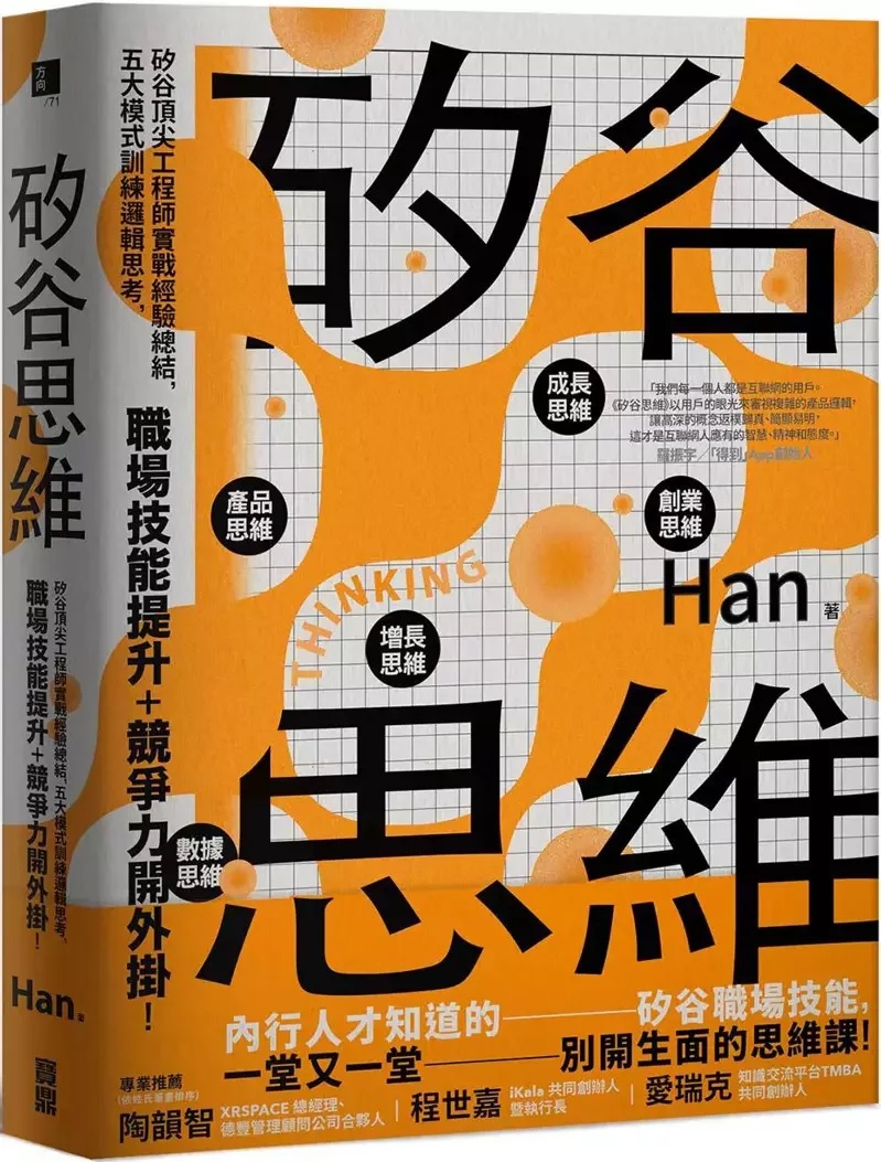 這本《矽谷思維:矽谷頂尖工程師實戰經驗總結,五大模式訓練邏輯思考,職場技能提升+競爭力開外掛!》分別從「產品」、「數據」、「創業」、「增長」、「成長」的五個面向的思維特性來描述矽谷這個環境的思維文化。讓讀者即便無法去矽谷親身接受洗禮,至少可以一窺這個地方的人是如何讓自己精益求精,創造出各種過人的成果。我們可能只有少數人可以在矽谷工作,但可以試著將矽谷的成功文化帶入我們的生活。